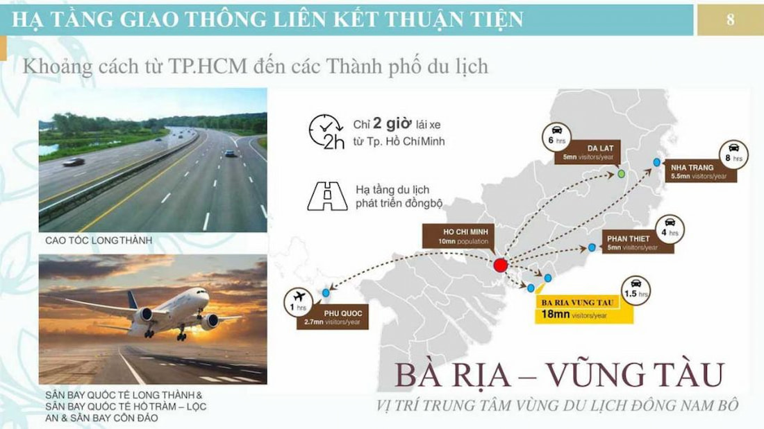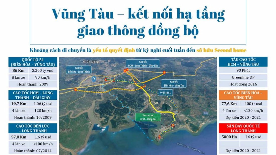 Đặc biệt, thời gian tới đây khi tuyến cao tốc Thành phố Hồ Chí Minh – Long Thành – Dầu Giây, tuyến QL51 mở rộng được hoàn thiện và đi vào vận hành, khả năng kết nối liên vùng giữa Vùng Tàu và thành phố Hồ Chí Minh sẽ ngày càng trở nên dễ dàng, thuận tiện, và từ vị trí kết nối nhanh đến với các khu đô thị cao cấp như