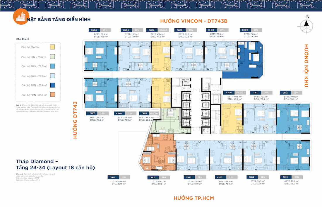 MẶT BẰNG CĂN HỘ CHARM DIAMOND DĨ AN
