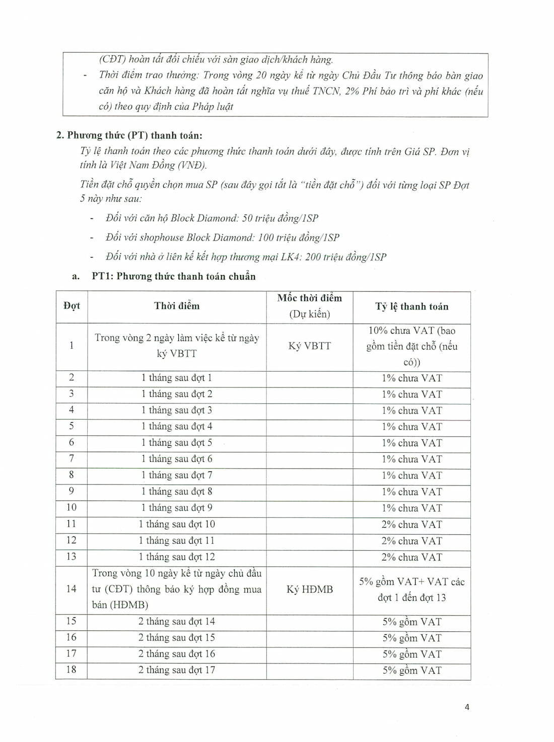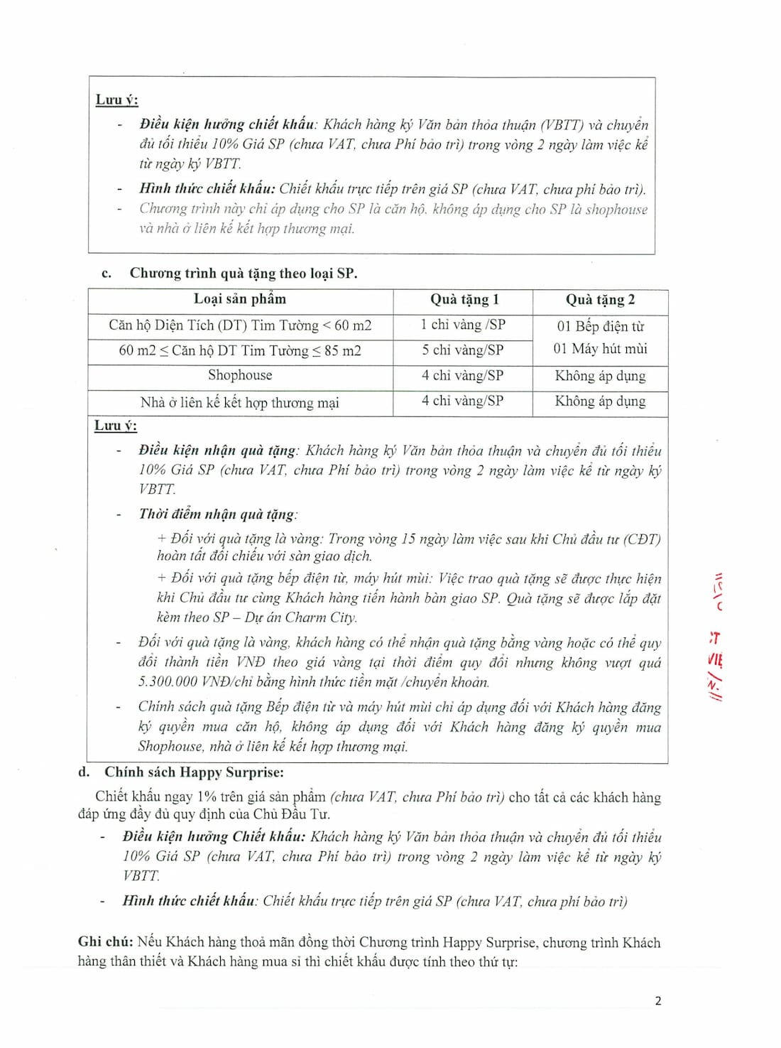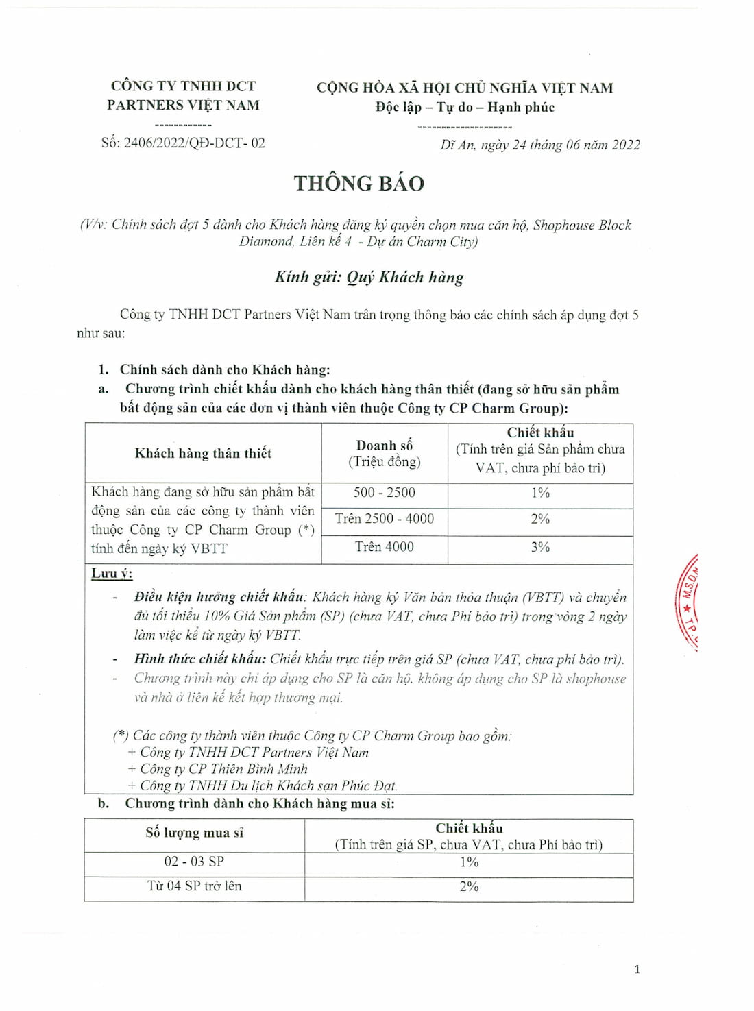 CHÍNH SÁCH BÁN HÀNG CĂN HỘ CHARM DIAMOND DĨ AN