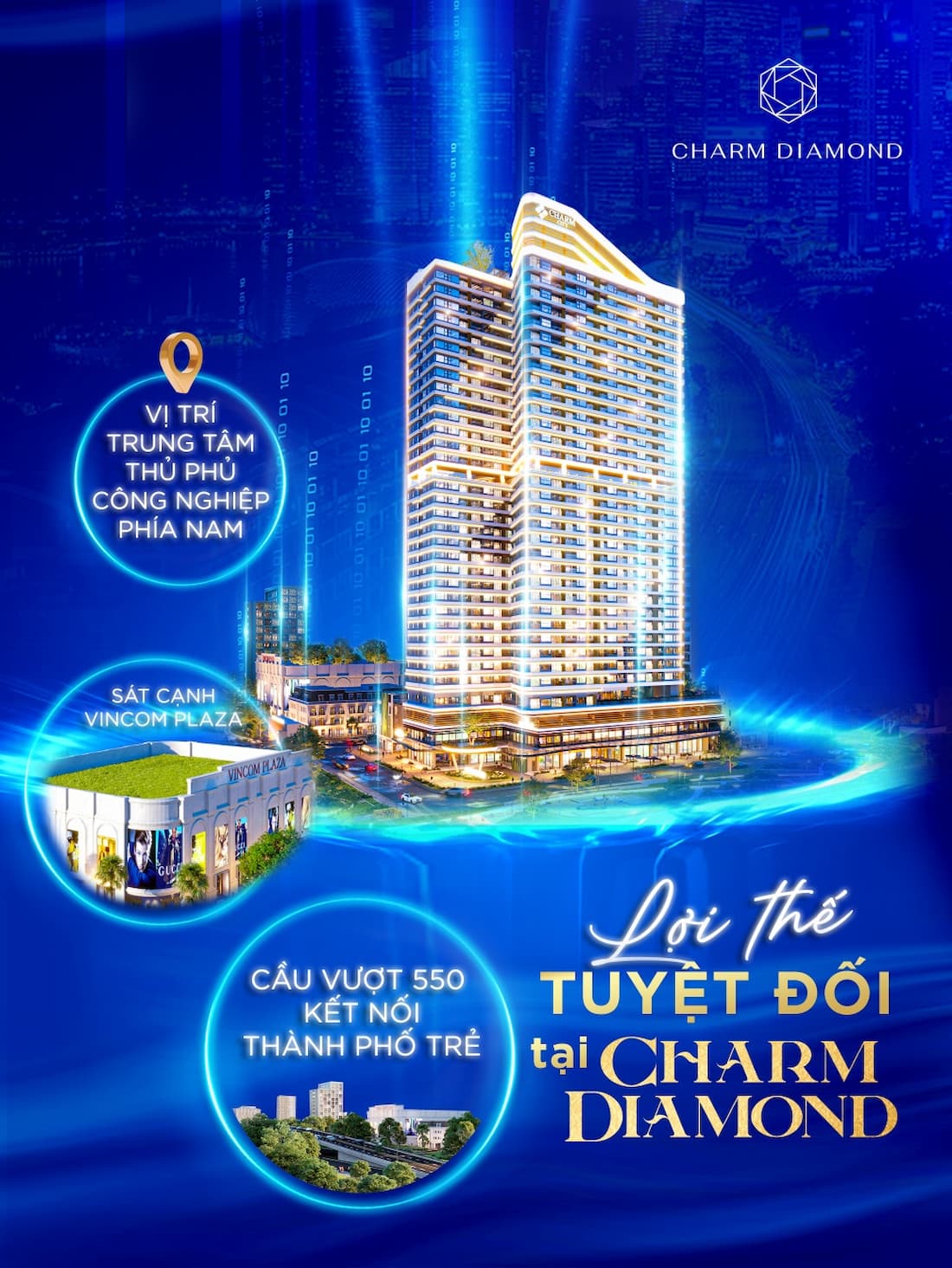 - Giữa thành phố năng động mới nổi như Bình Dương, Charm Diamond là “cơn mưa” giải tỏa cơn khát căn hộ cao cấp. Bởi xung quanh dự án tập trung đến 2 khu công nghiệp lớn Sóng Thần và VSIP với hàng chục ngàn chuyên gia quốc tế.
