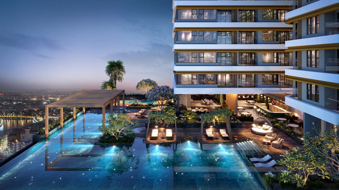 - Tầng 4: Tiện ích nội khu và hồ bơi
