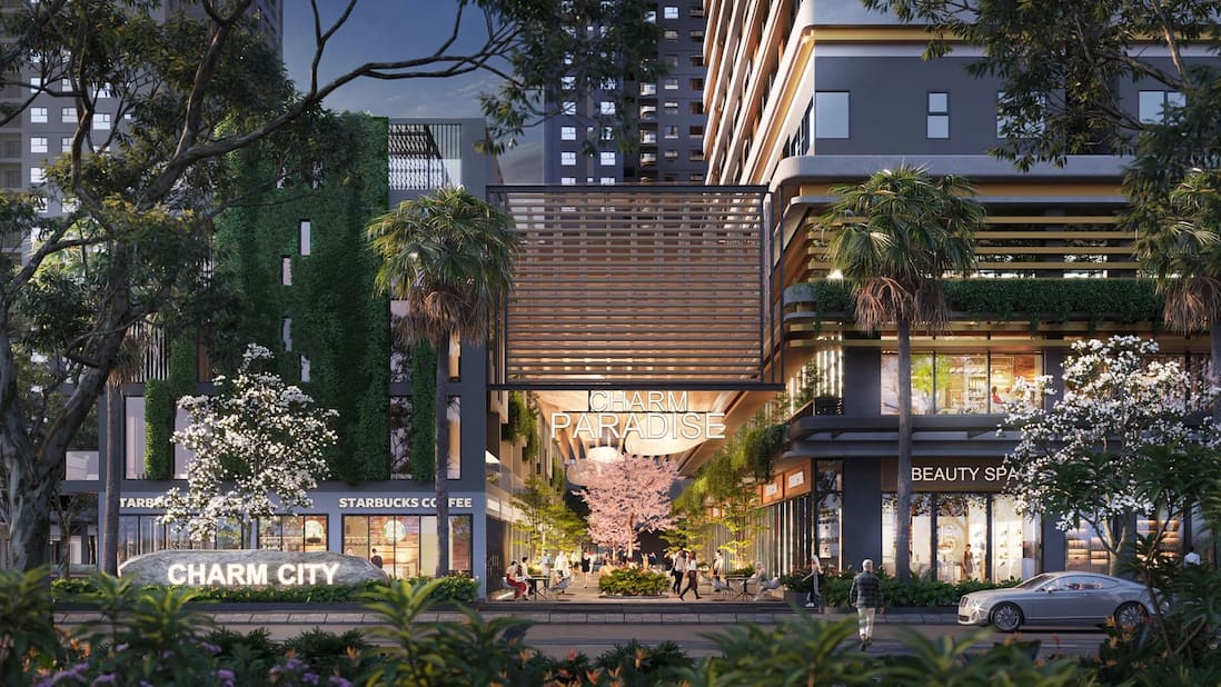 - Định hướng là khu phức hợp cao cấp đáng sống, chủ đầu tư đã mạnh tay chi hàng trăm tỉ đồng để bổ sung hệ tiện ích cao cấp như tại các thành phố lớn cho Charm City.
