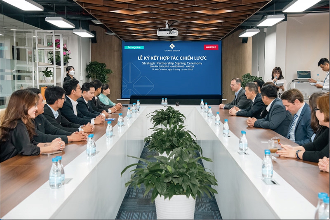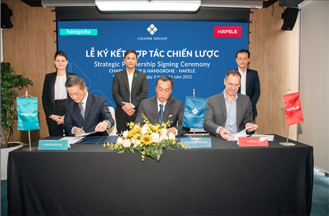 Sáng ngày 3/11/2022, Charm Group đã tiến hành ký kết thỏa thuận hợp tác chiến lược với với 2 tập đoàn Hansgrohe và Hafele. Buổi ký kết đã diễn ra thành công với sự có mặt của 3 bên và đi đến hợp tác phát triển lâu dài trong tương lai để kiến tạo nên những dự án đẳng cấp như