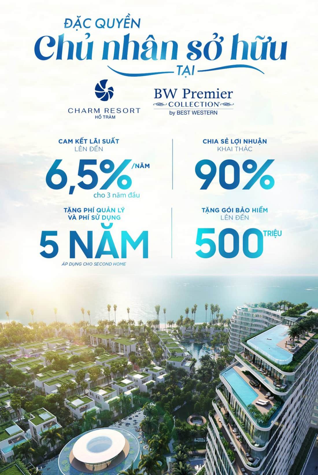 Charm Resrot Hồ Tràm với quy mô 50ha được tập đoàn Charm Group ót vốn 2 tỷ USD để kiến tạo biểu tượng nghỉ dưỡng – giải trí – trị liệu sức khoẻ đẳng cấp quốc tế, điểm nghỉ dưỡng số 1 phía Nam theo mô hình all-in-one tại vùng biển Hồ Tràm, xã Phước Thuận, huyện Xuyên Mộc, tỉnh Bà Rịa – Vũng Tàu. Dự án sẽ cung cấp ra thị trường khoảng 4.000 căn condotel, shophouse, biệt thự, phòng khách sạn tiêu chuẩn 5 sao…Trong đó giai đoạn 1 - Best Westrern Premier ra mắt với 1.086 căn. Trải dài gần 3km đường bờ biển, tọa lạc trong khu vực tập trung nhiều khu nghỉ dưỡng, resort, khách sạn cao cấp.