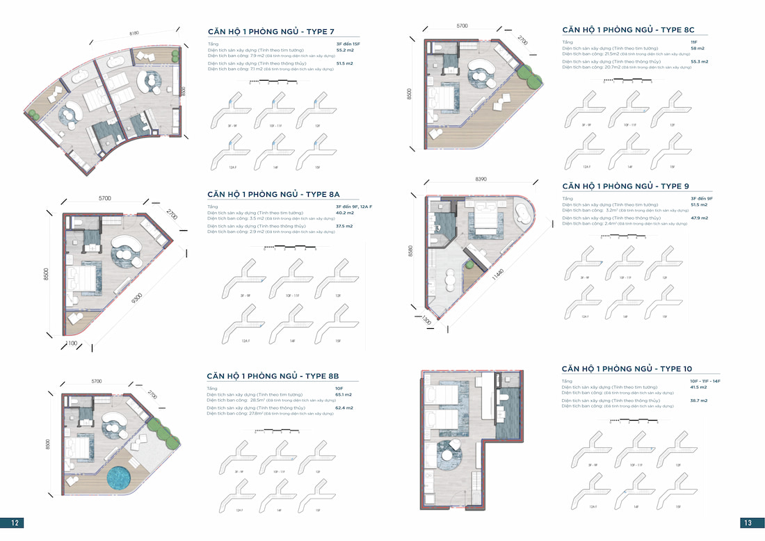 - Diện tích 38m2 - 44m2 - 50m2 - 55m2 - 60m2 - 80m2 - 100m2