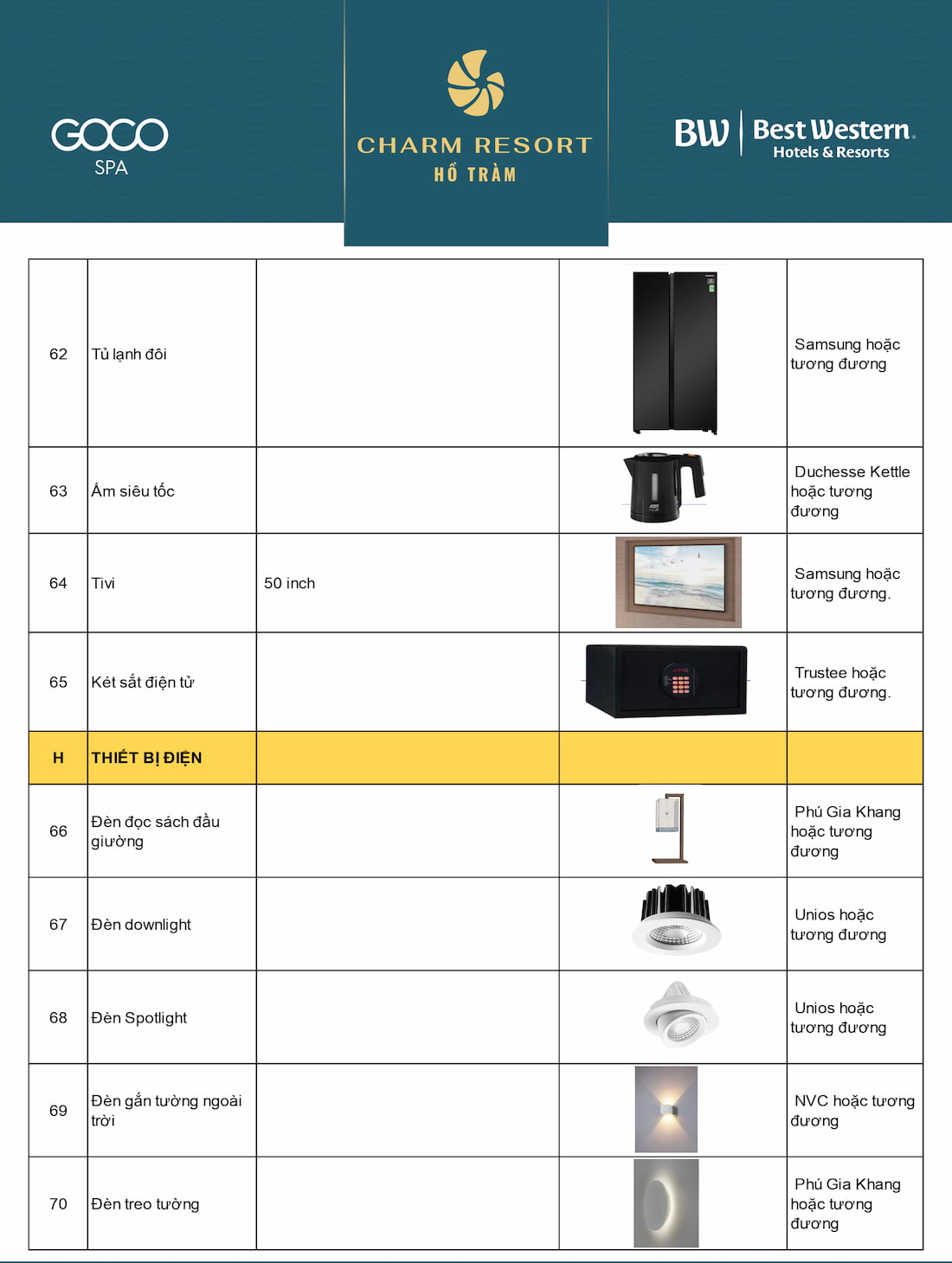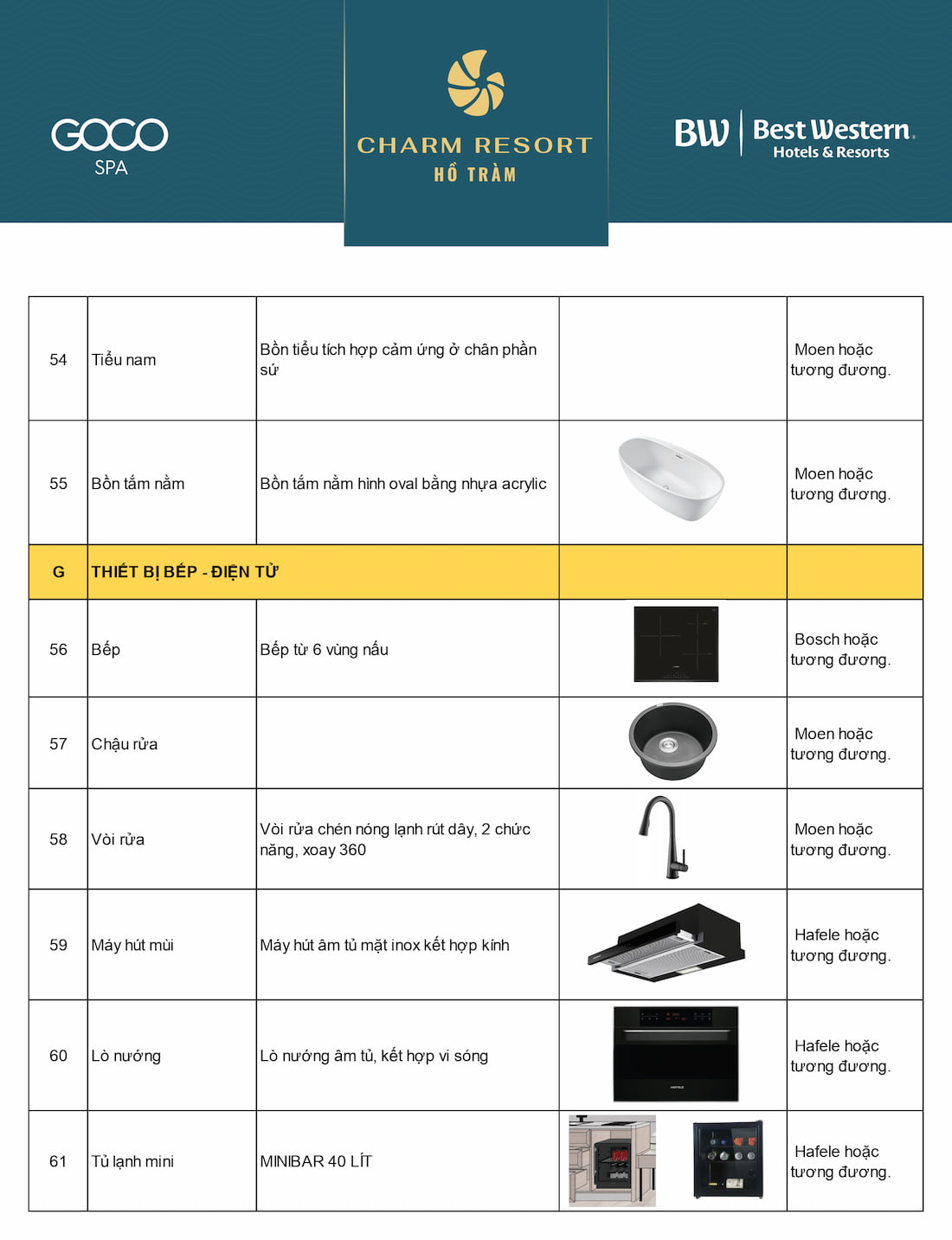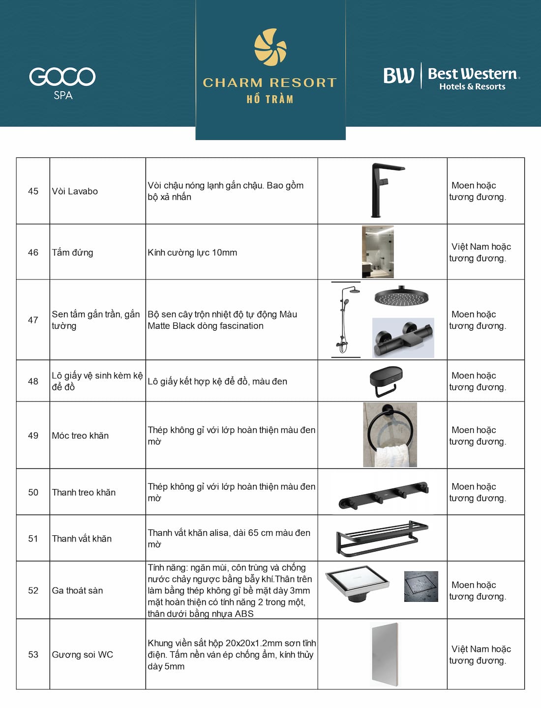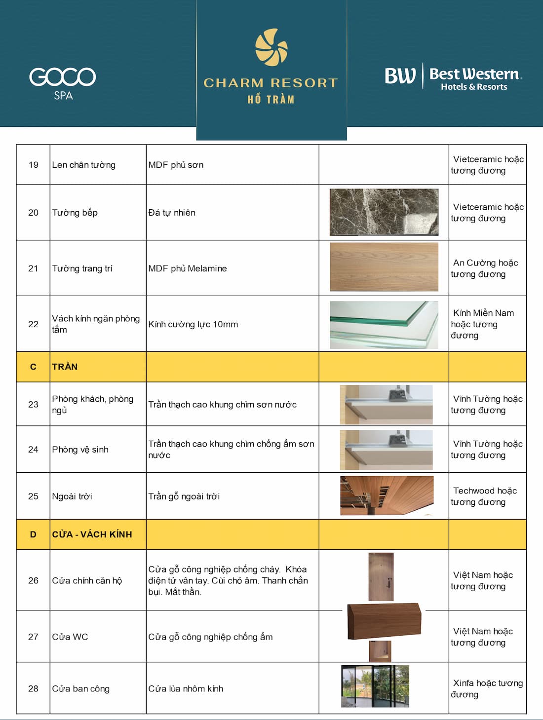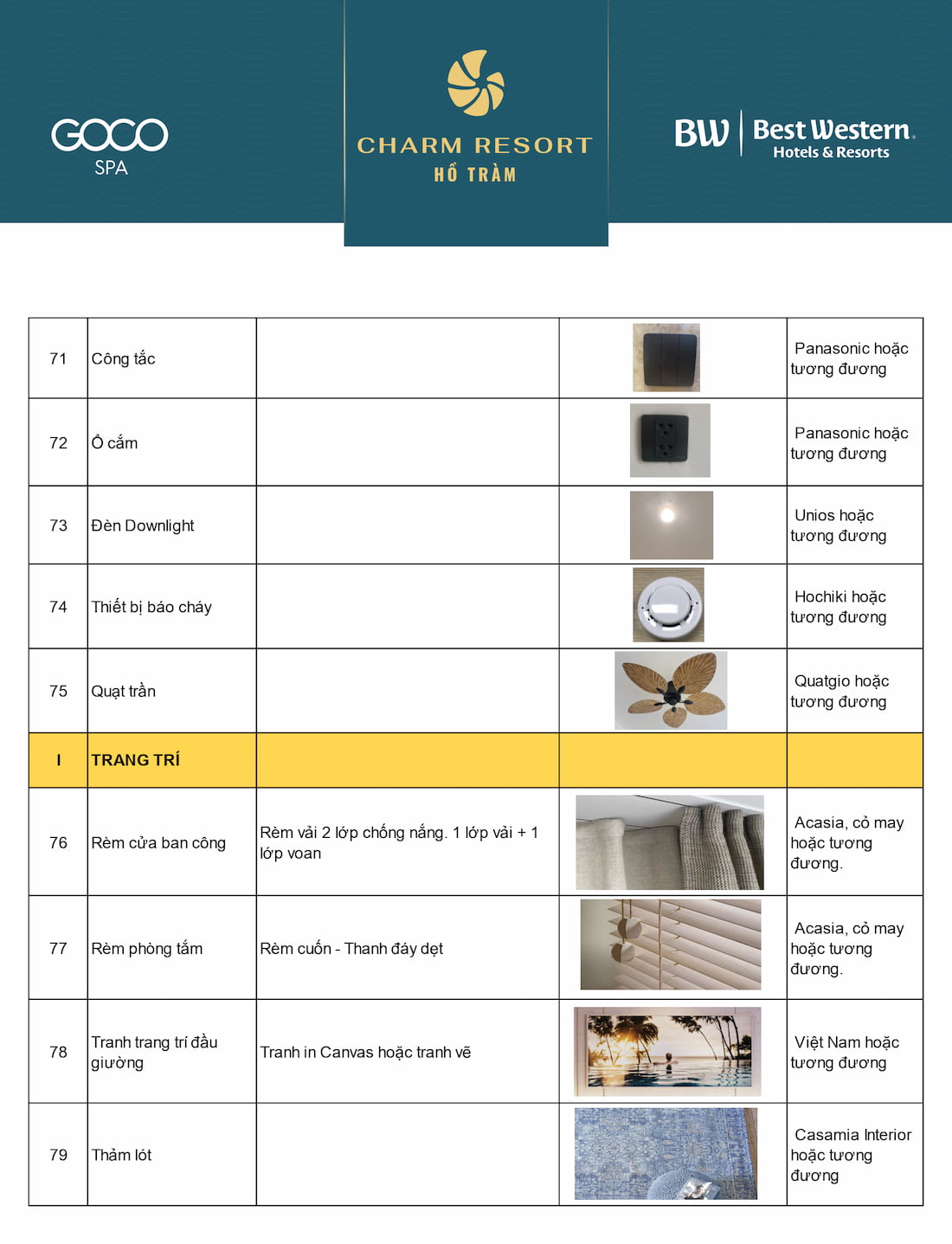 DANH MỤC BÀN GIAO DỰ ÁN CHARM RESORT HỒ TRÀM