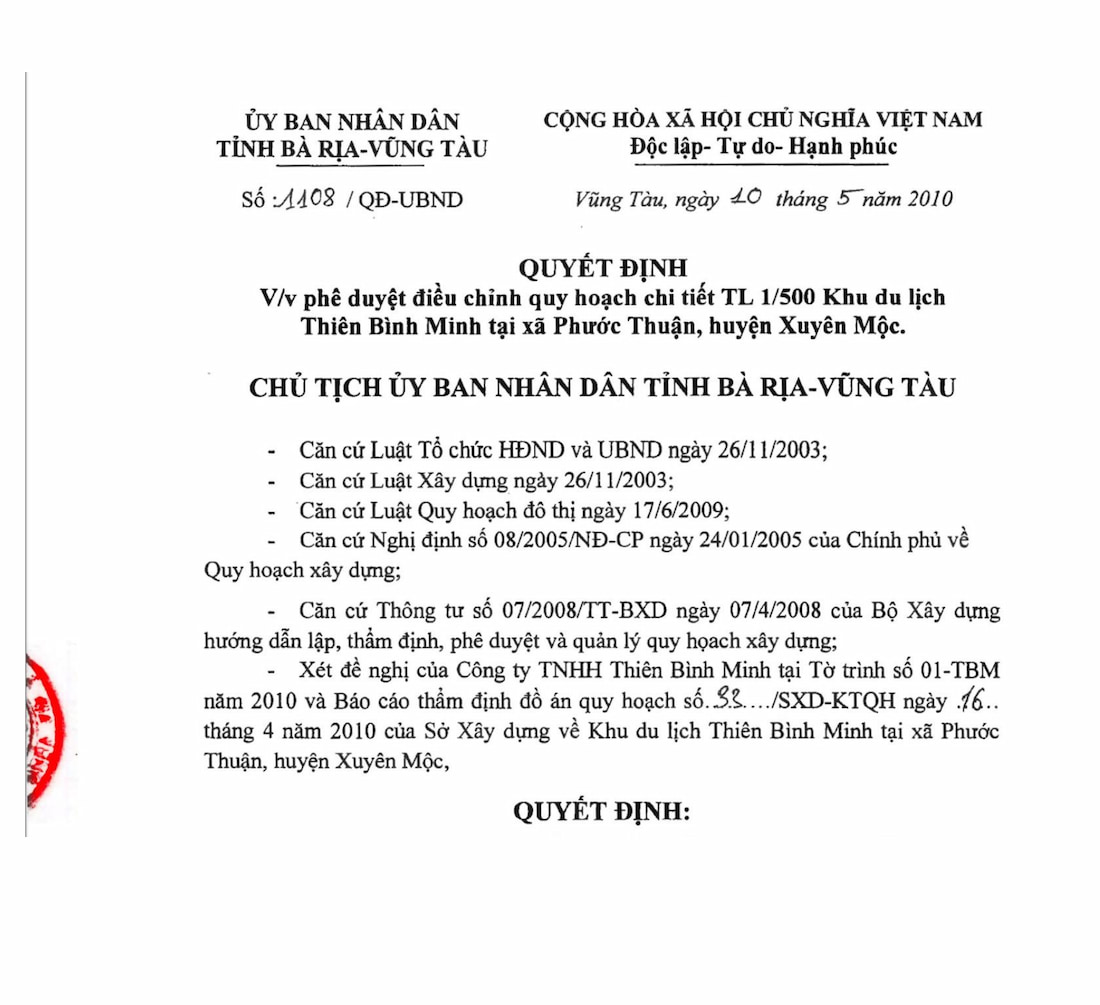 - Địa chỉ dự án: Ấp Hồ Tràm, Xã Phước Thuận, Huyện Xuyên Mộc, Tỉnh Bà Rịa - Vũng Tàu.