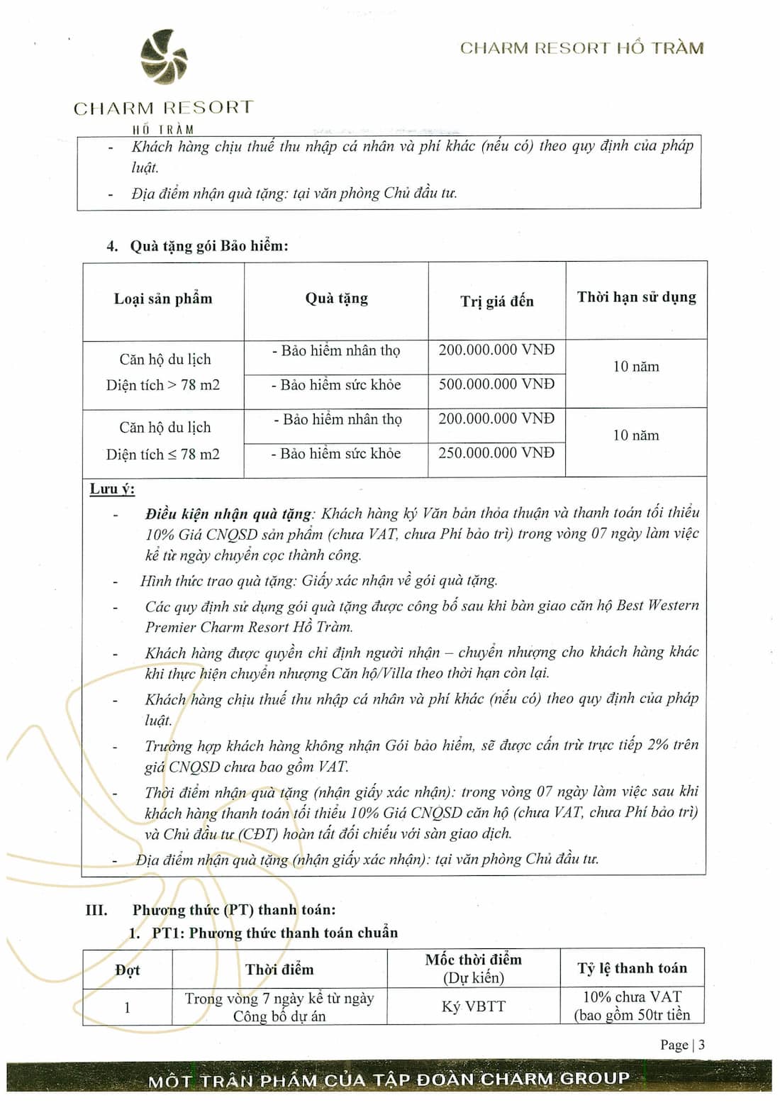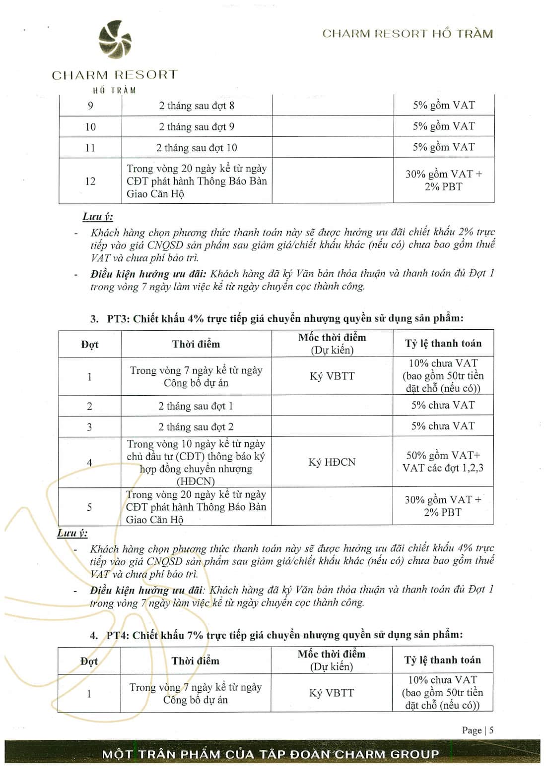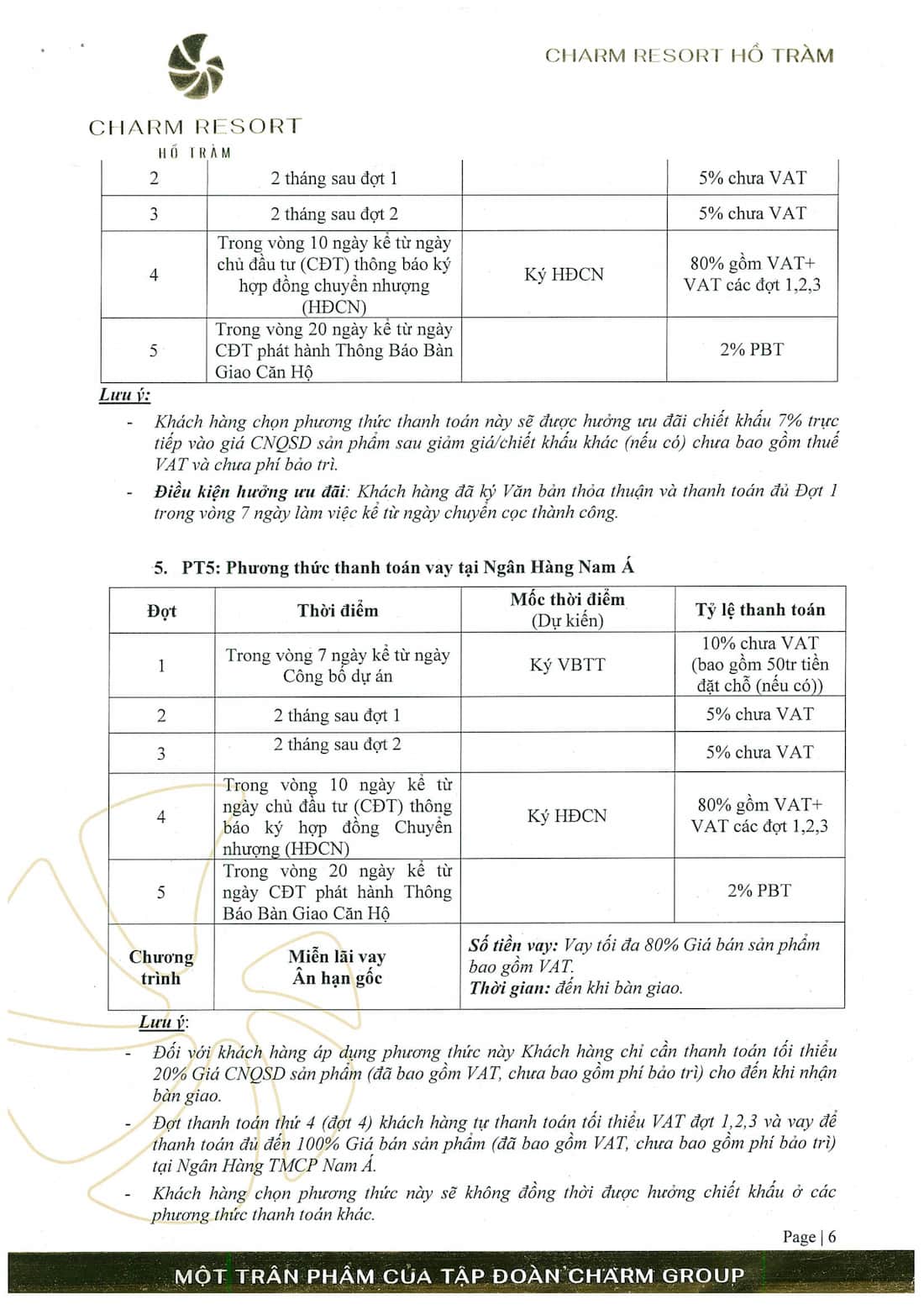CHÍNH SÁCH BÁN HÀNG DỰ ÁN CHARM HỒ TRÀM RESORT