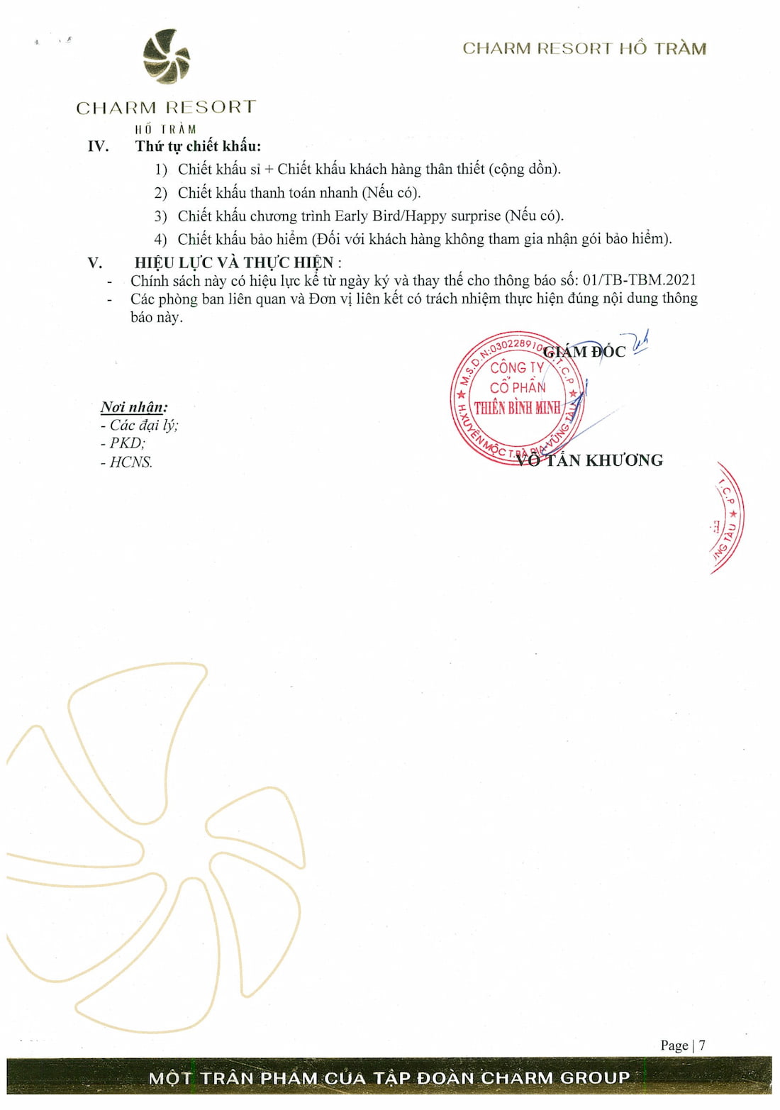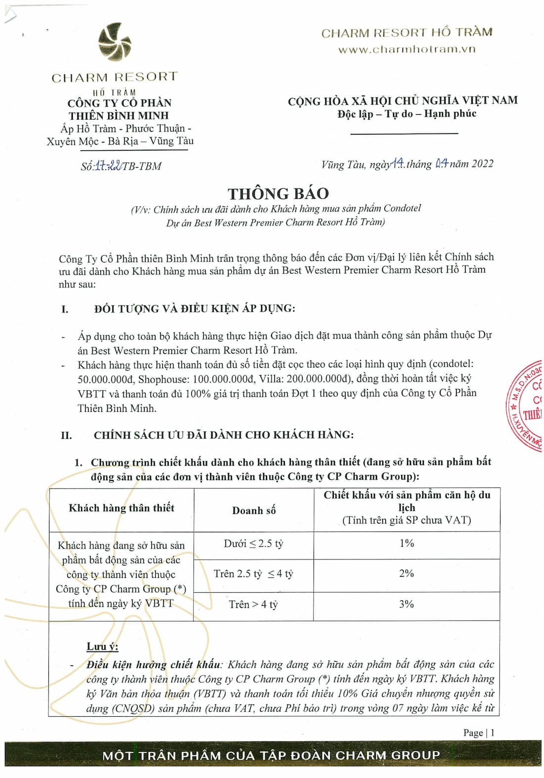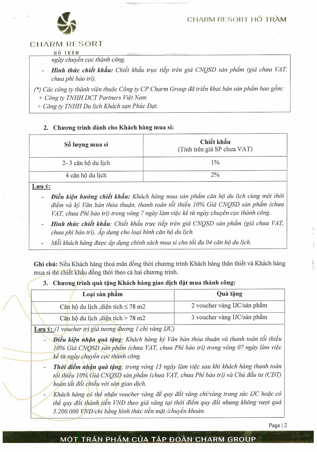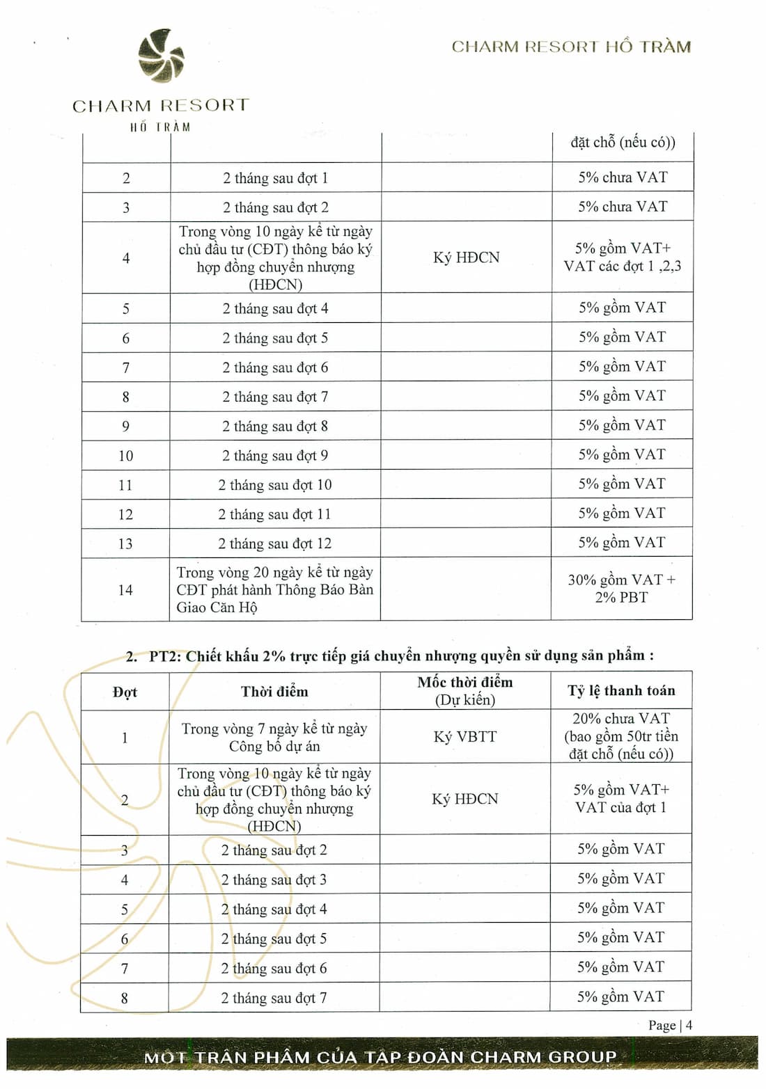 CHÍNH SÁCH BÁN HÀNG DỰ ÁN CHARM HỒ TRÀM RESORT