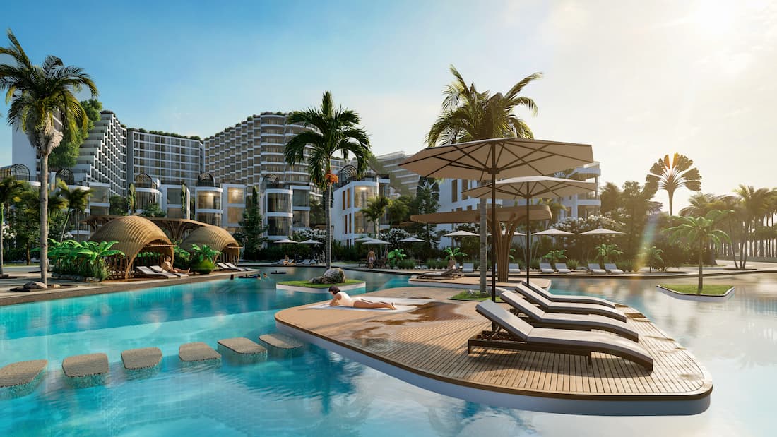 - Dự án mang đến các căn hộ nghỉ dưỡng, shophouse và biệt thự cao cấp cùng hệ tiện ích đa dạng, đáp ứng hoàn hảo mọi nhu cầu nghỉ dưỡng của du khách, góp phần giải nhiệt "cơn khát" resort 5 sao tại đây.