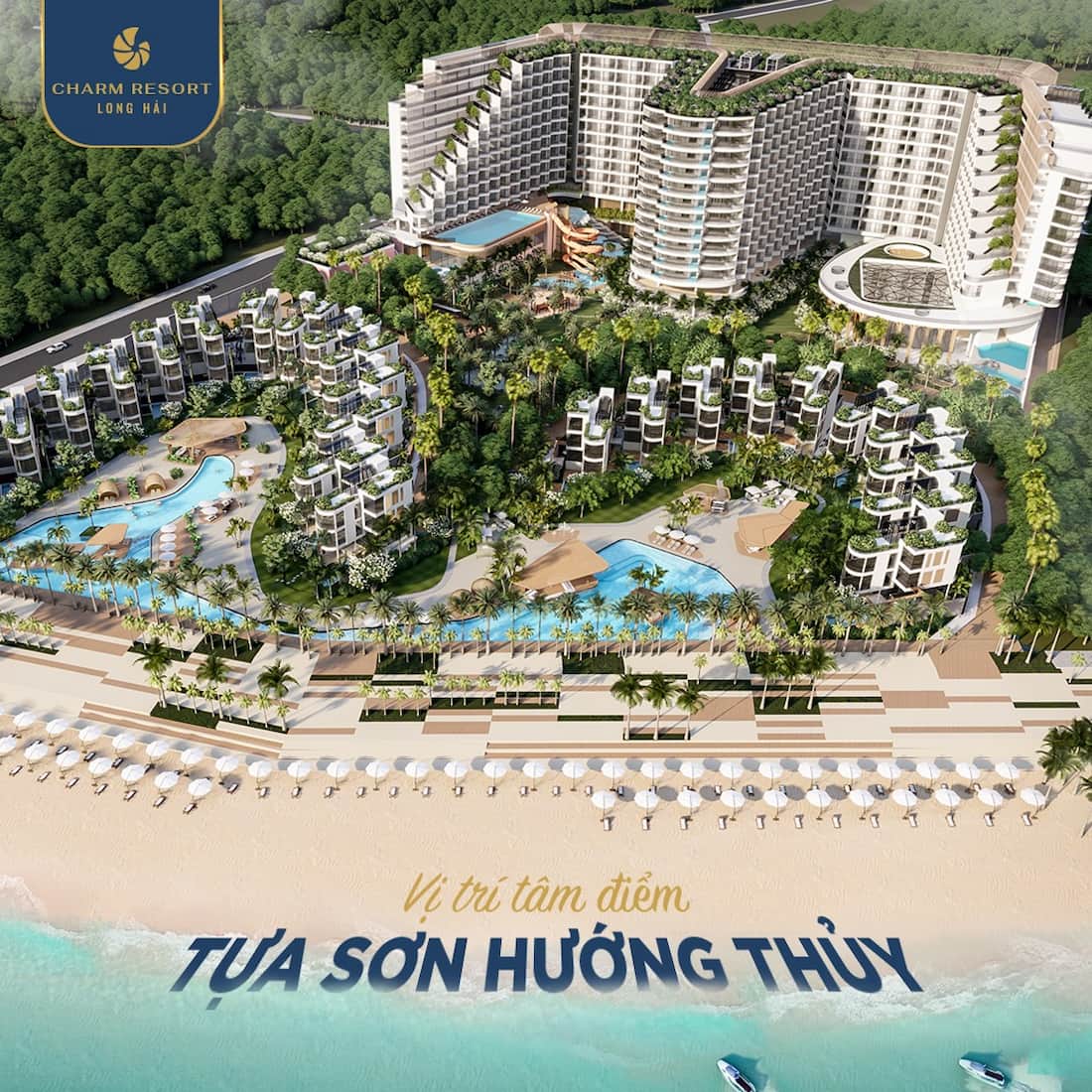 Charm Resort Long Hải là tổ hợp nghỉ dưỡng đẳng cấp 5 sao được trang bị một loạt các chuỗi tiện ích sang trọng và hiện đại. Dự án được quy hoạch ngay mặt tiền đường Võ Thị Sáu, thị trấn Long Hải, Bà Rịa – Vũng Tàu. Với làn nước biển xanh trong, bờ cát trắng như kem trải dài, bầu không khí trong lành cùng cảnh quan thiên nhiên tuyệt đẹp, có đường bờ biển dài hơn 300 m.