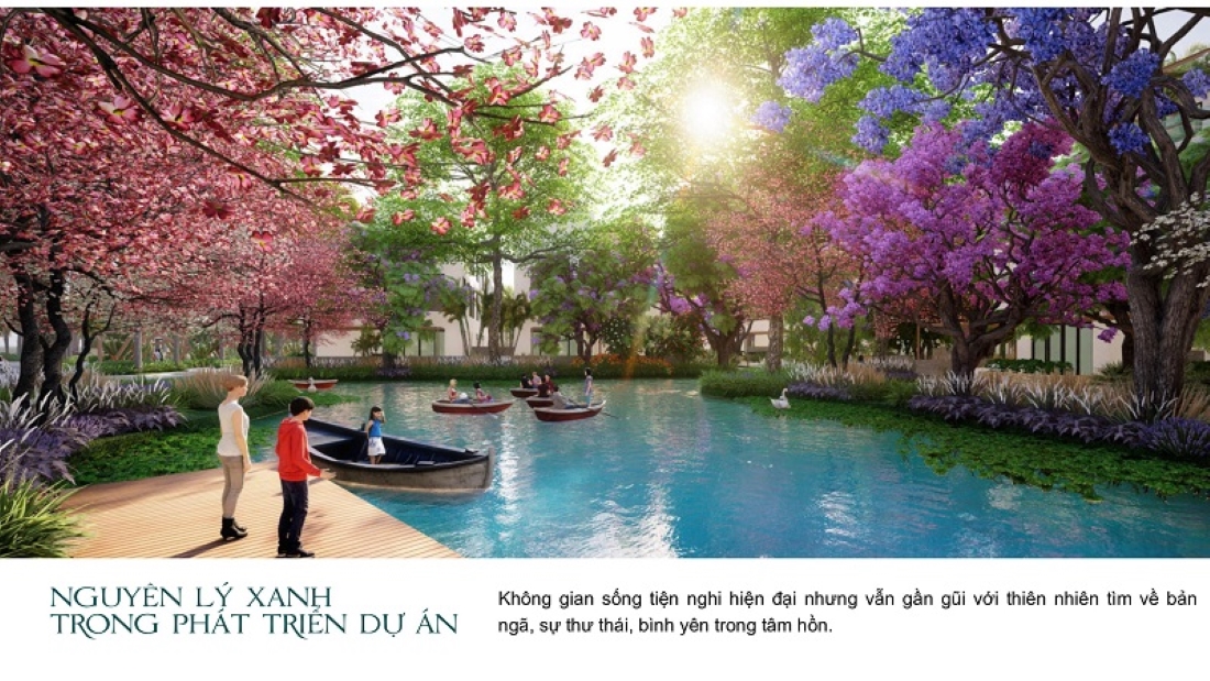 Khi thời gian bắt đầu chuyển sang thu cũng là lúc hàng loạt cây trồng khác nở rộ và tô vẽ nên màu sắc nhẹ nhàng của mùa thu vào những buổi chuồi se se lạnh. Thiết kế xanh tại dự án được chú trọng đến mong muốn của những chủ sở hữu, vì vậy hồ nước xinh xắn đã được chủ đầu tư bố trí kết hợp với cảnh quan tuyệt đẹp để các du khách và chủ sở hữu có thể thoải mái thả hồn tận hưởng không khí hay ngắm khung cảnh hoàng hôn của những ngày thu thơ mộng.