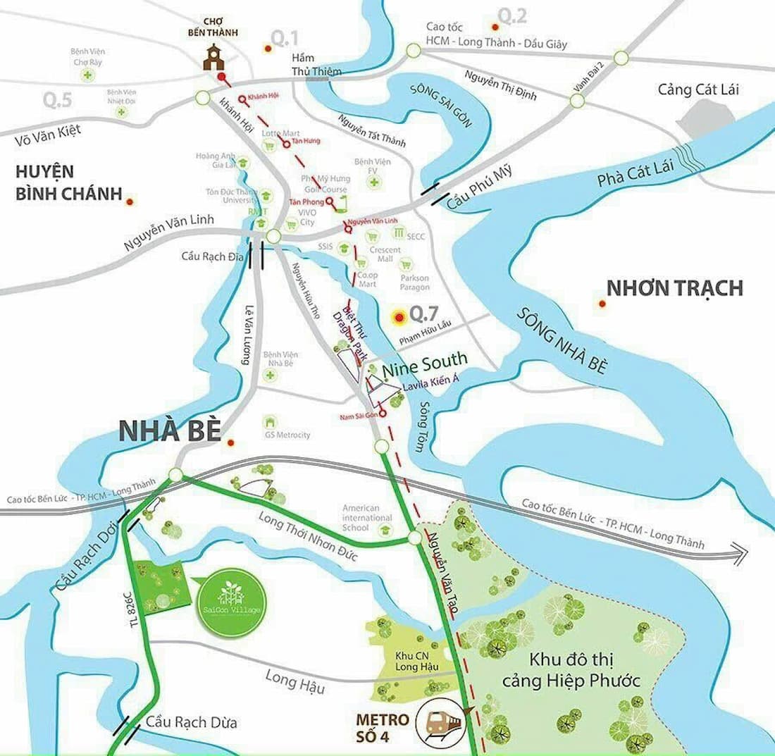 Nằm trên trục giao thông Nguyễn Hữu Thọ và tuyến Metro 4 hướng đến cảng Hiệp Phước.