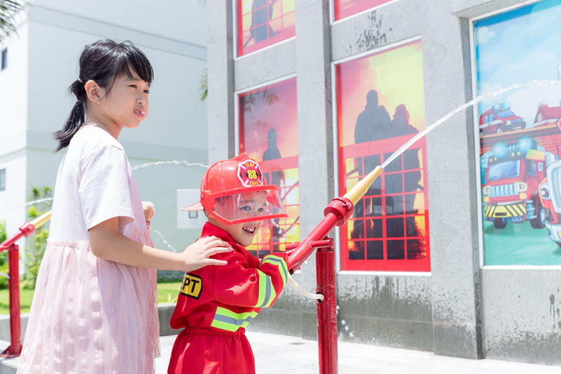 Tại Charm Resort Hồ Tràm còn có khu vực cho các bé hóa thân thành lính cứu hỏa, với những trải nghiệm này các bé sẽ hiểu rõ hơn về nghề lính cứu hỏa khi được mặc đồ bảo hộ và dùng vòi nước để dập lửa. Toàn bộ quá trình trải nghiệm sẽ được mô phỏng thực tế và giám sát kỹ càng trong quá trình các bé trải nghiệm và hiểu rõ hơn về việc đề phòng và xử lý phòng cháy chữa cháy.