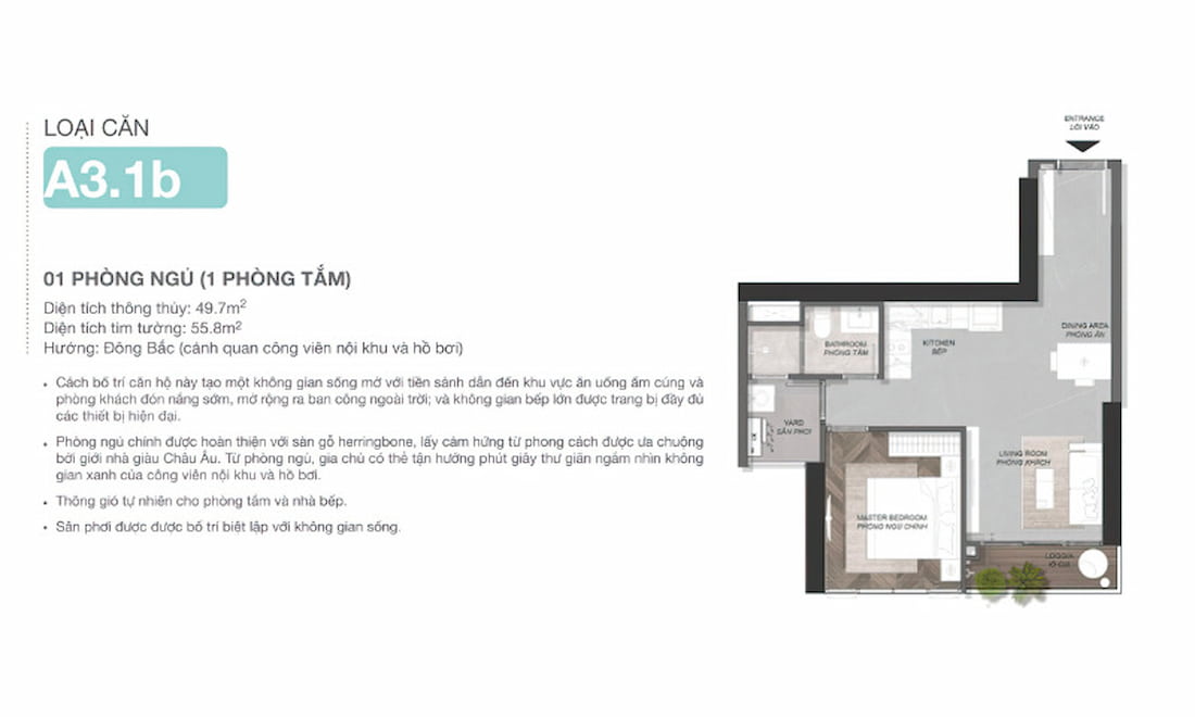 Mặt Bằng Thiết Kế Căn Hộ Eaton Park 1 Phòng Ngủ