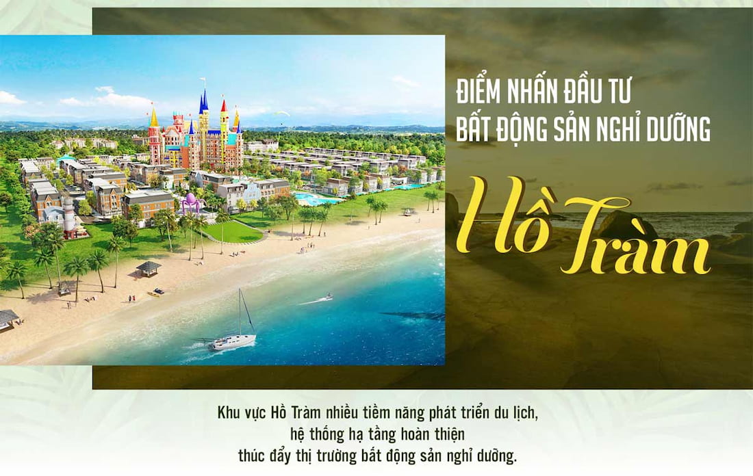 Nằm trên cung đường ven biển tỉnh Bà Rịa - Vũng Tàu, Hồ Tràm là khu vực đang có rất nhiều bất động sản du lịch, các resort nghỉ dưỡng đang từng ngày phát triển rất sôi động. Sự đồng bộ trong giao thông kết nối đã chắp cánh mạnh mẽ cho Hồ Tràm khởi sắc hơn với nhiều dự án nghỉ dưỡng đẳng cấp khác hẳn so với du lịch bình dân tại TP Vũng Tàu.